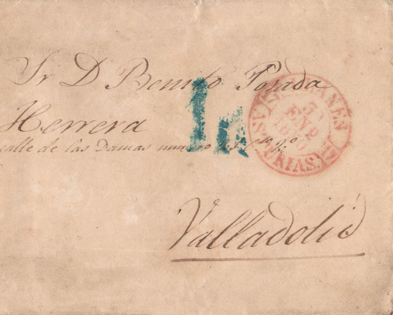 |ABOUT|1850. LLANES to VALLADOLID. Baeza LLANES / ASTURIAS, in red. MAGNIFICENT.