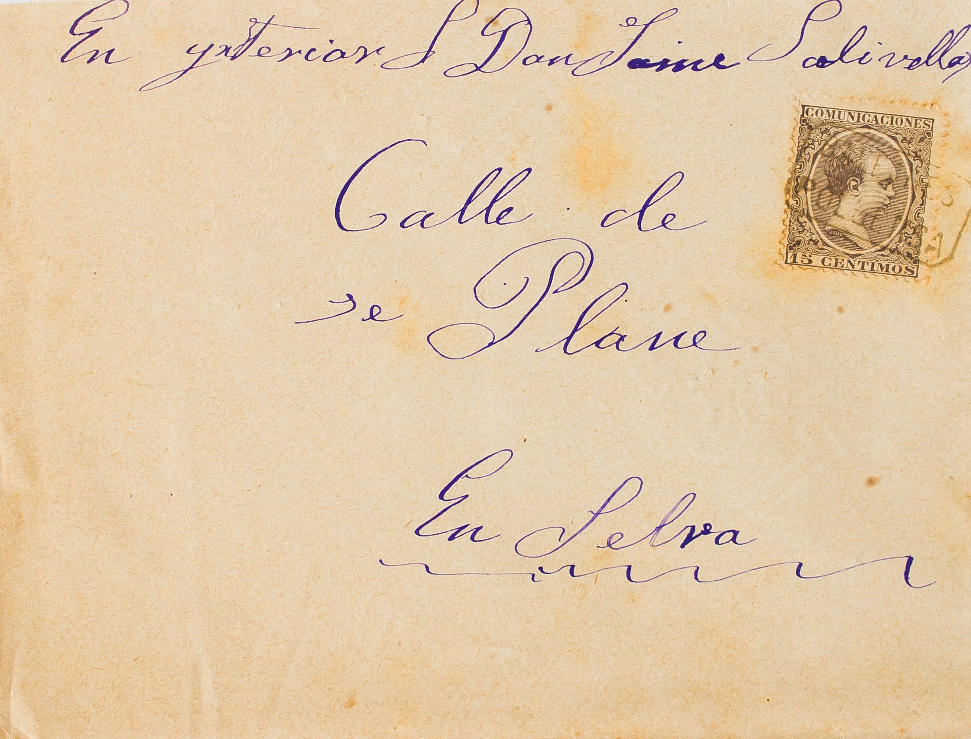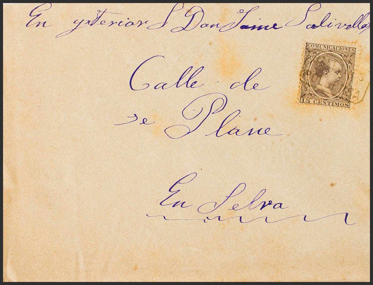 219. (1889ca). 15 chestnut cts. POLLENSA to JUNGLE. Mail postmark BALEARES / POLLENSA. MAGNIFICENT AND RARE.