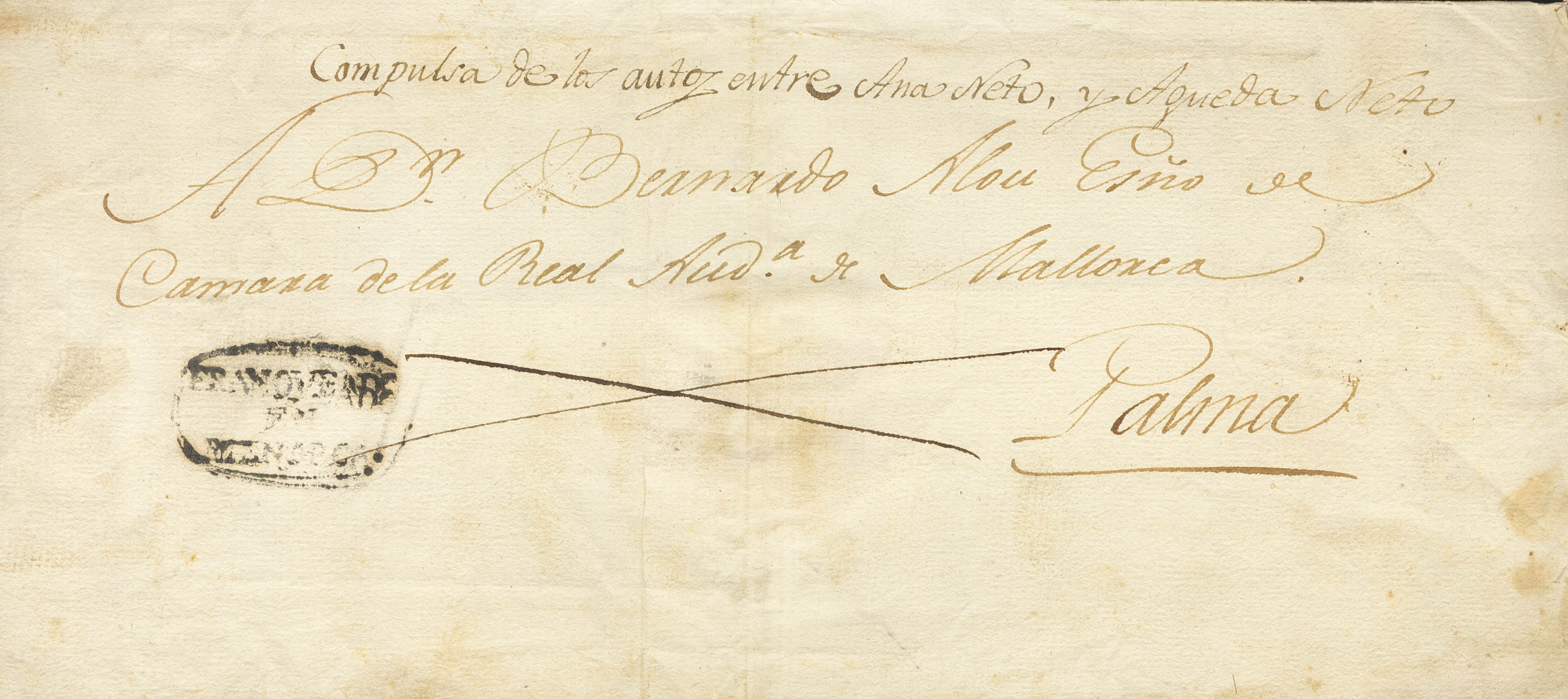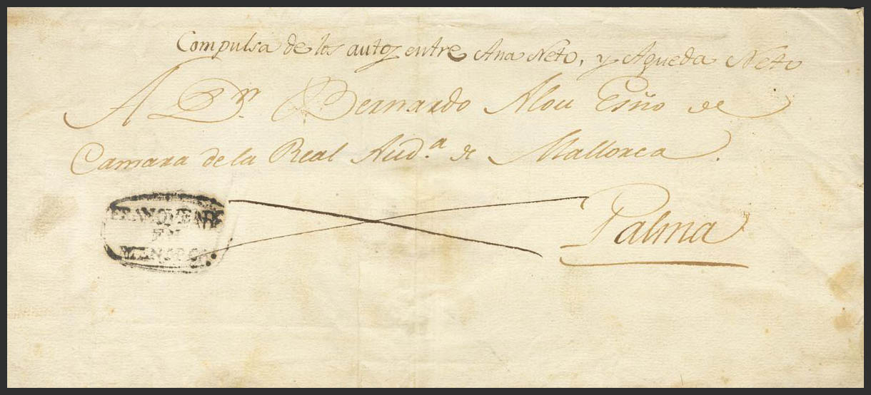 1789. MENORCA to PALMA DE MALLORCA. Mark FRANQUEADO / EN / MENORCA (PE10) edition 2004, on the back a dry seal acting as a closure indicating the year. MAGNIFICENT AND RARE.