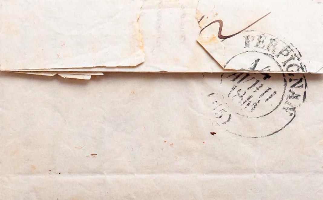 1841. PALMA DE MALLORCA to ILLE SUR TET (FRANCE). MALLORCA mark, in red (PE15) 2004 edition and OUTRE-MER / MARSEILLE date, in red. MAGNIFICENT.