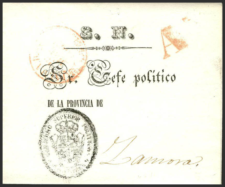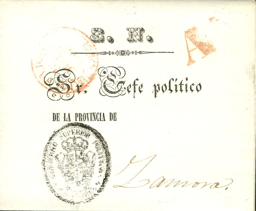 English 1847. PALMA DE MALLORCA to ZAMORA. Mark "AS" of Fertilizer, in red (PE22) 2004 edition. MAGNIFICENT.