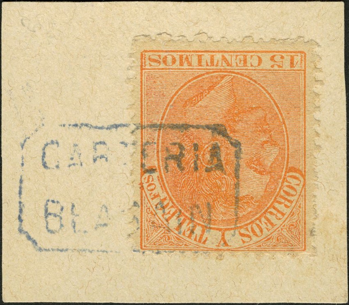 △ 210. 1882. 15 cts orange, on fragment. Postmark CARTERIA / BEASAIN. LUXURY.