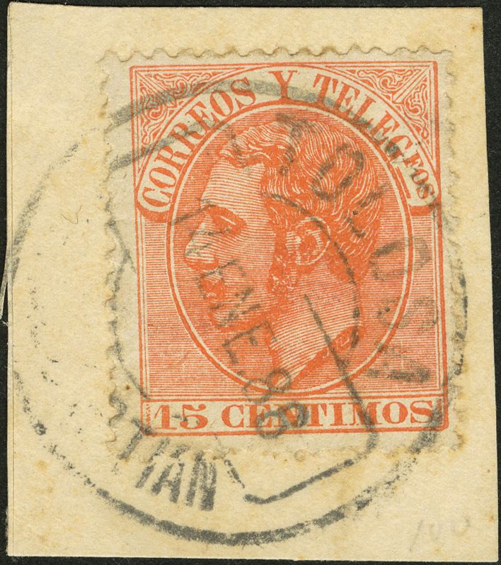 △ 210. 1882. 15 cts orange, on fragment. Postmark TOLOSA / SAN SEBASTIAN.