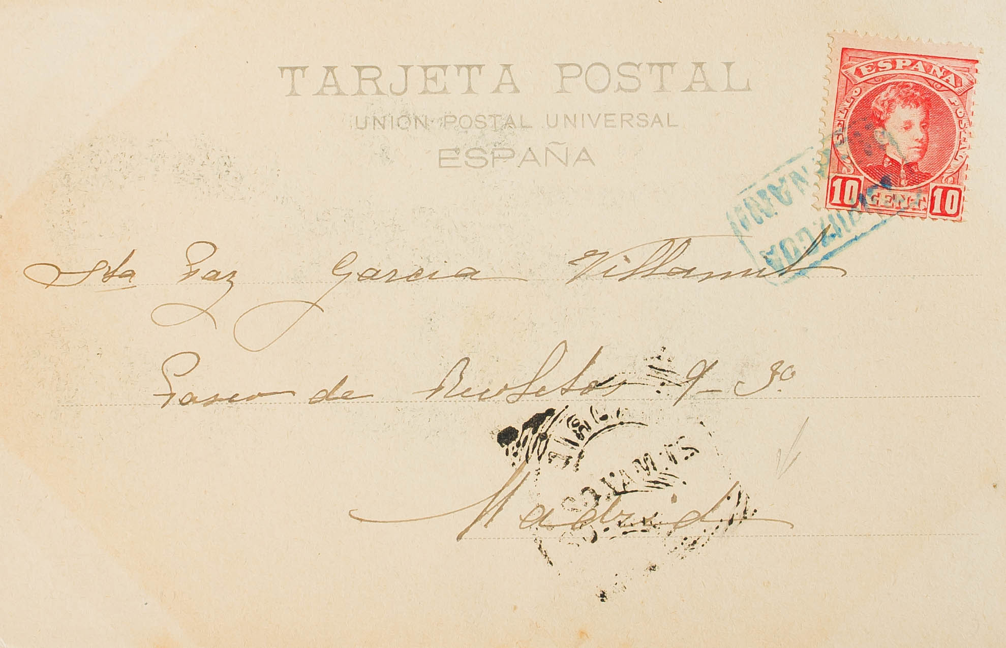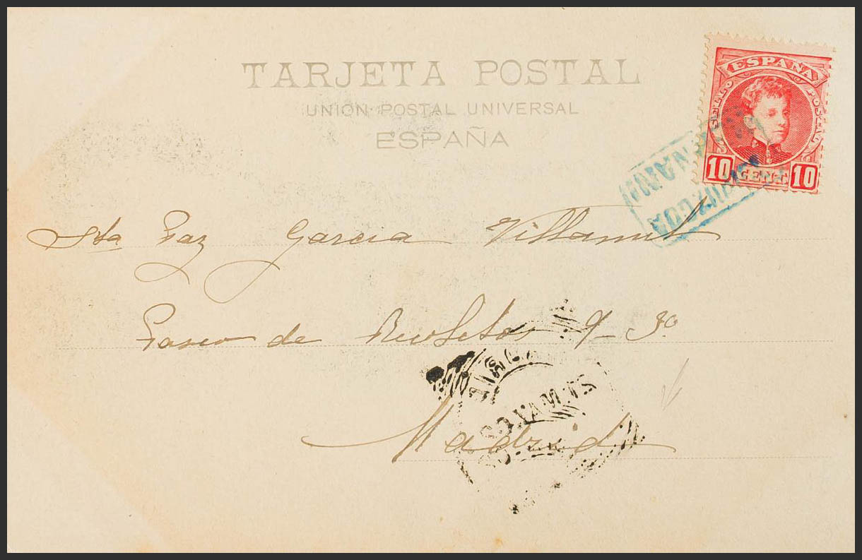 243. 1902. 10 cts red. HERNANI to MADRID. Postmark GUIPUZCOA / HERNANI, in blue. MAGNIFICENT AND RARE.