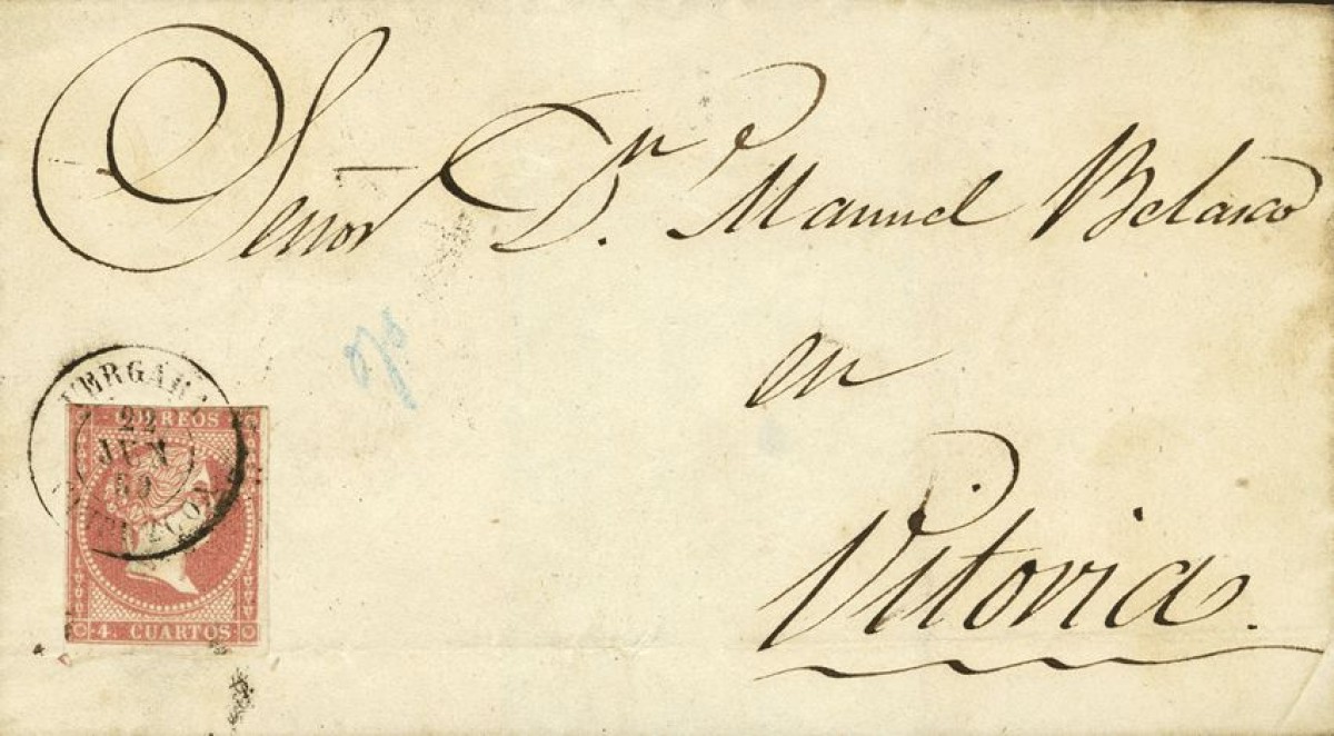 48. 1856. 4 red cuartos . VERGARA to VITORIA. Postmark VERGARA / GUIPUZCOA. MAGNIFICENT.