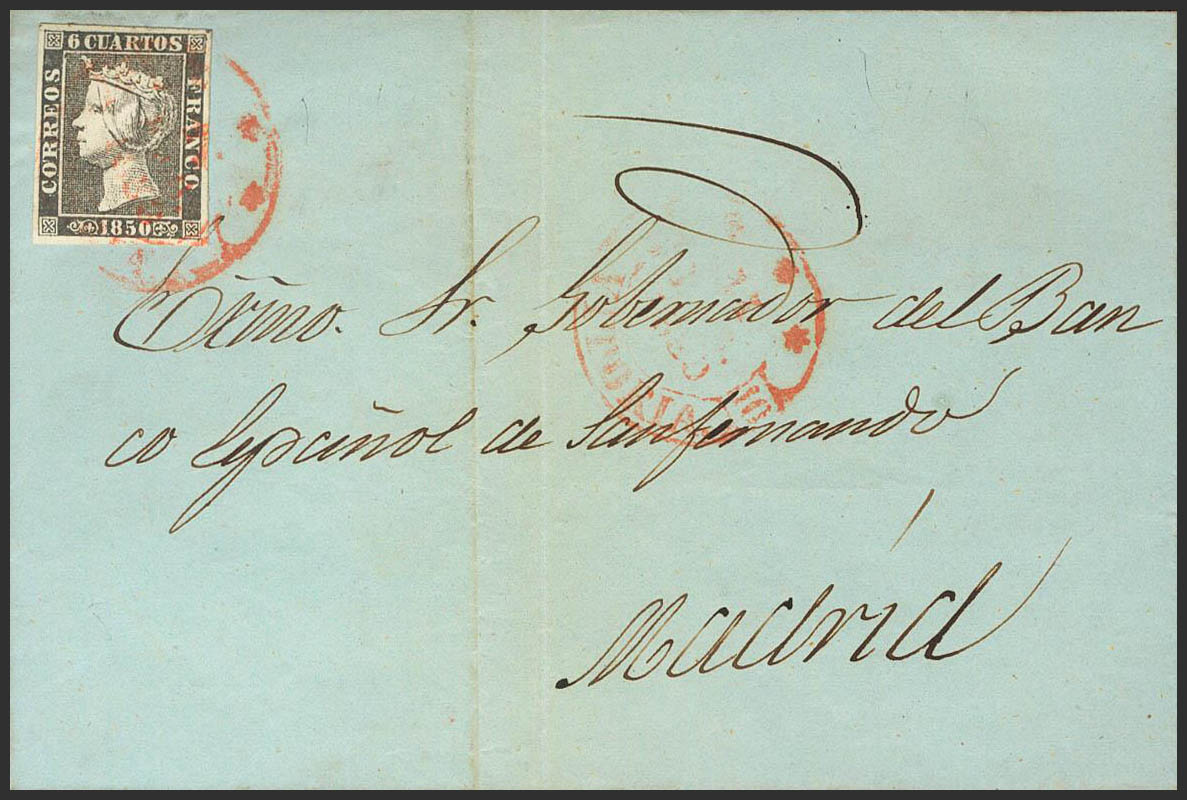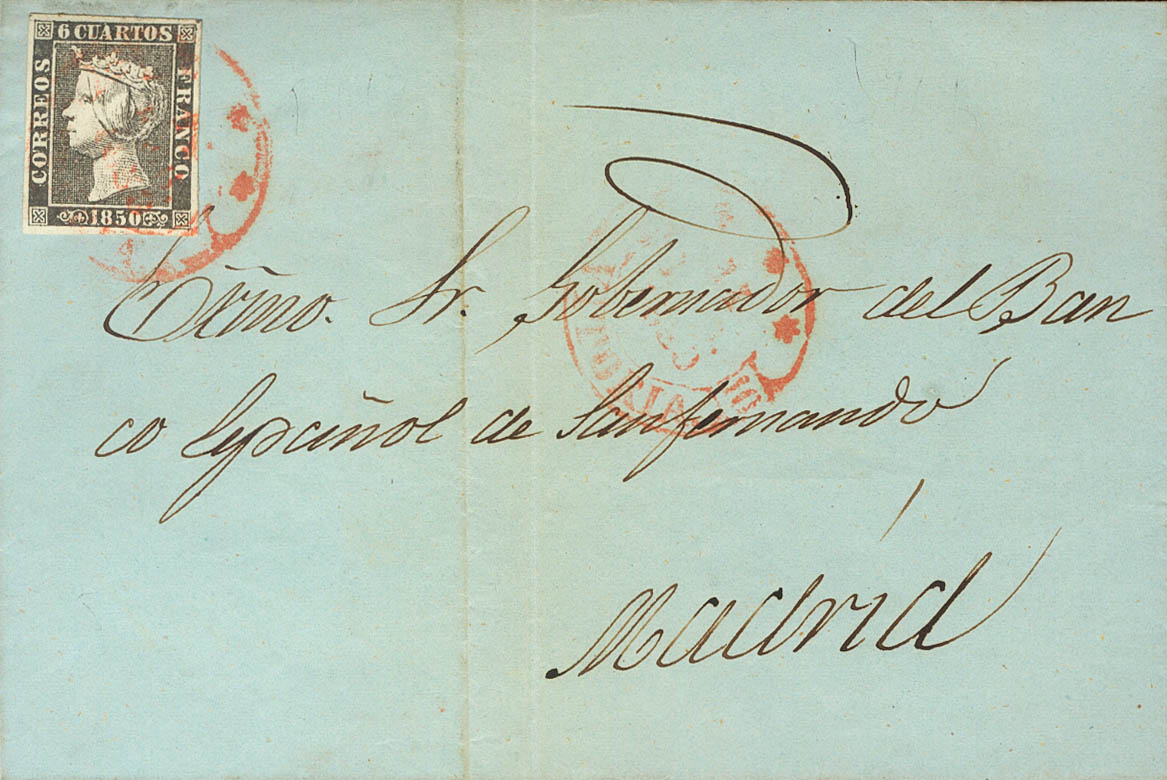 1. 1850. 6 cuartos black. VITORIA to MADRID. Postmark baeza *** / VITORIA. MAGNIFICENT.
