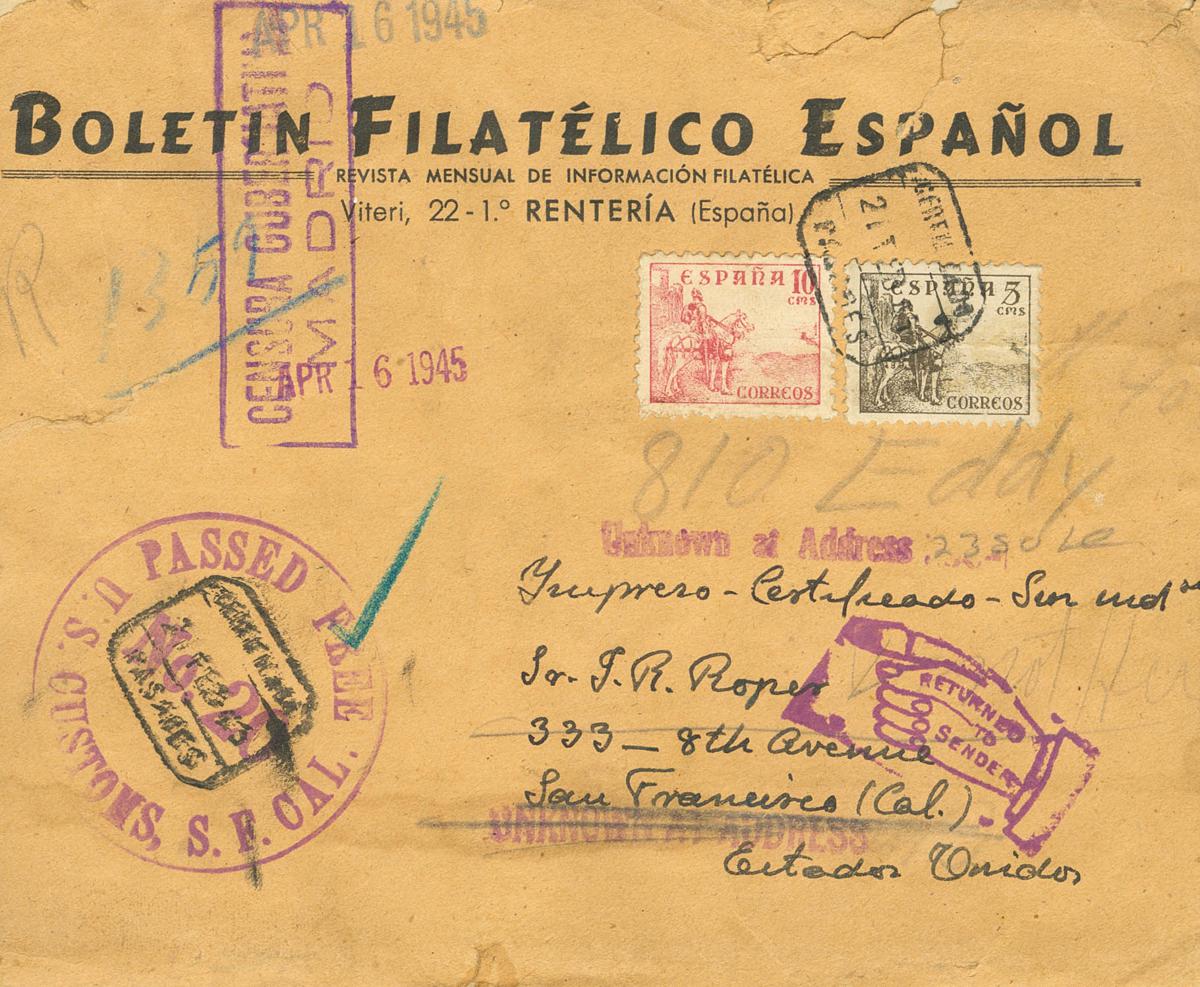 Basque Country. Postal History. CERTIFICATE / PAJARES, arrival on the back. MAGNIFICENT.