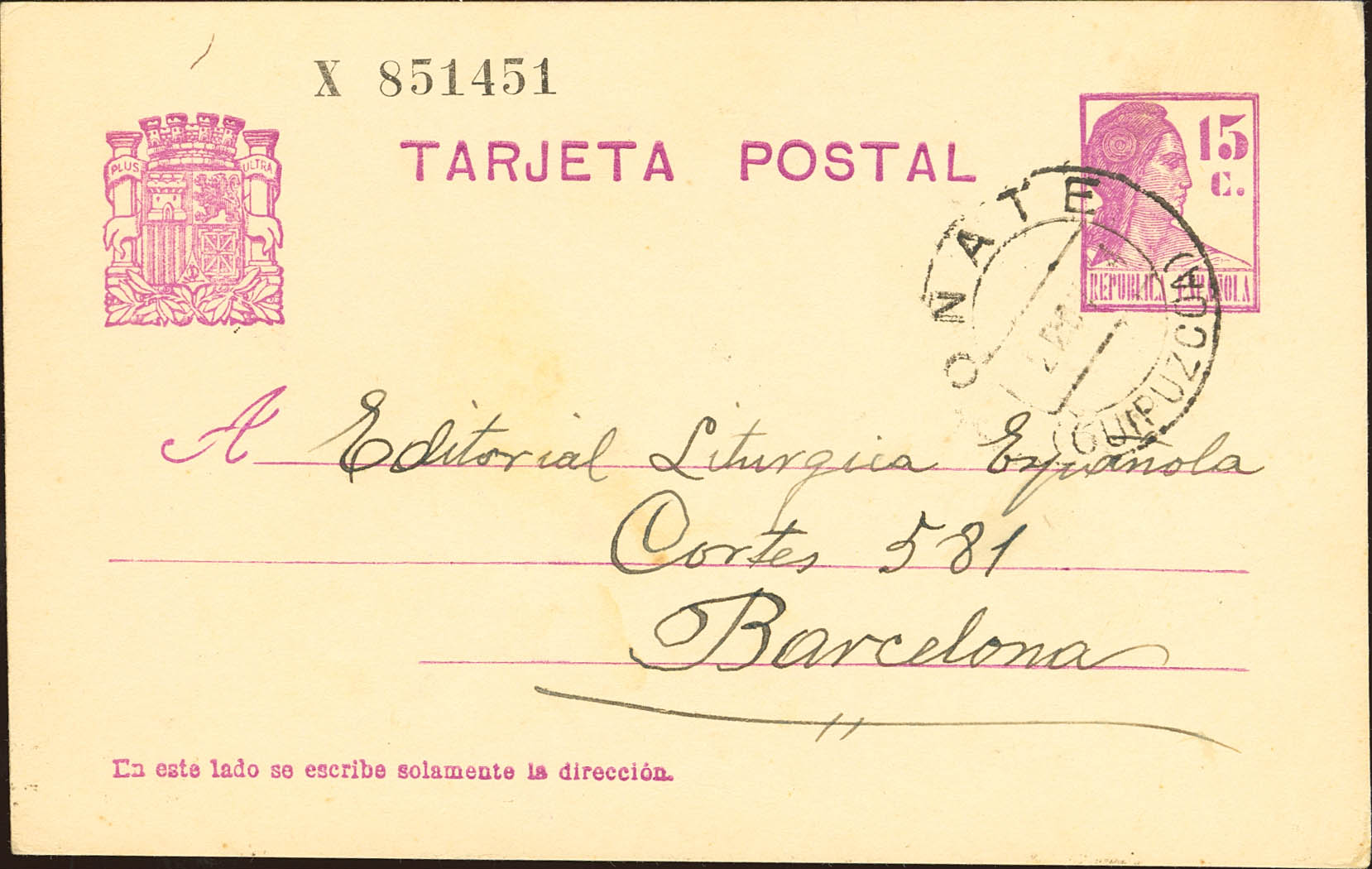 Basque Country. Postal History. OÑATE / (GUIPUZCOA). MAGNIFICENT.