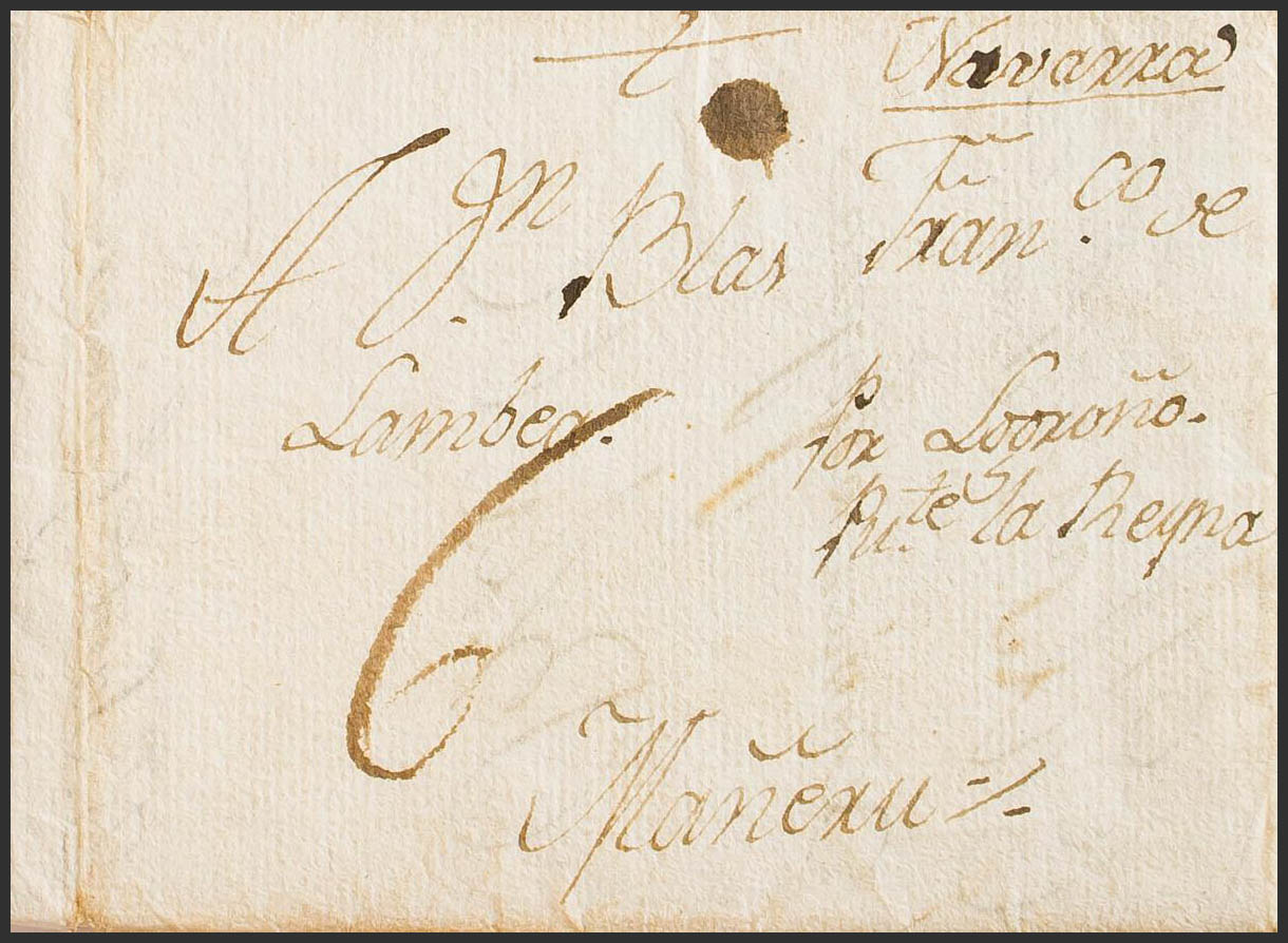 1815. SAN SEBASTIAN to MAÑERU. Circulated without marks and only with the handwritten portage. MAGNIFICENT.