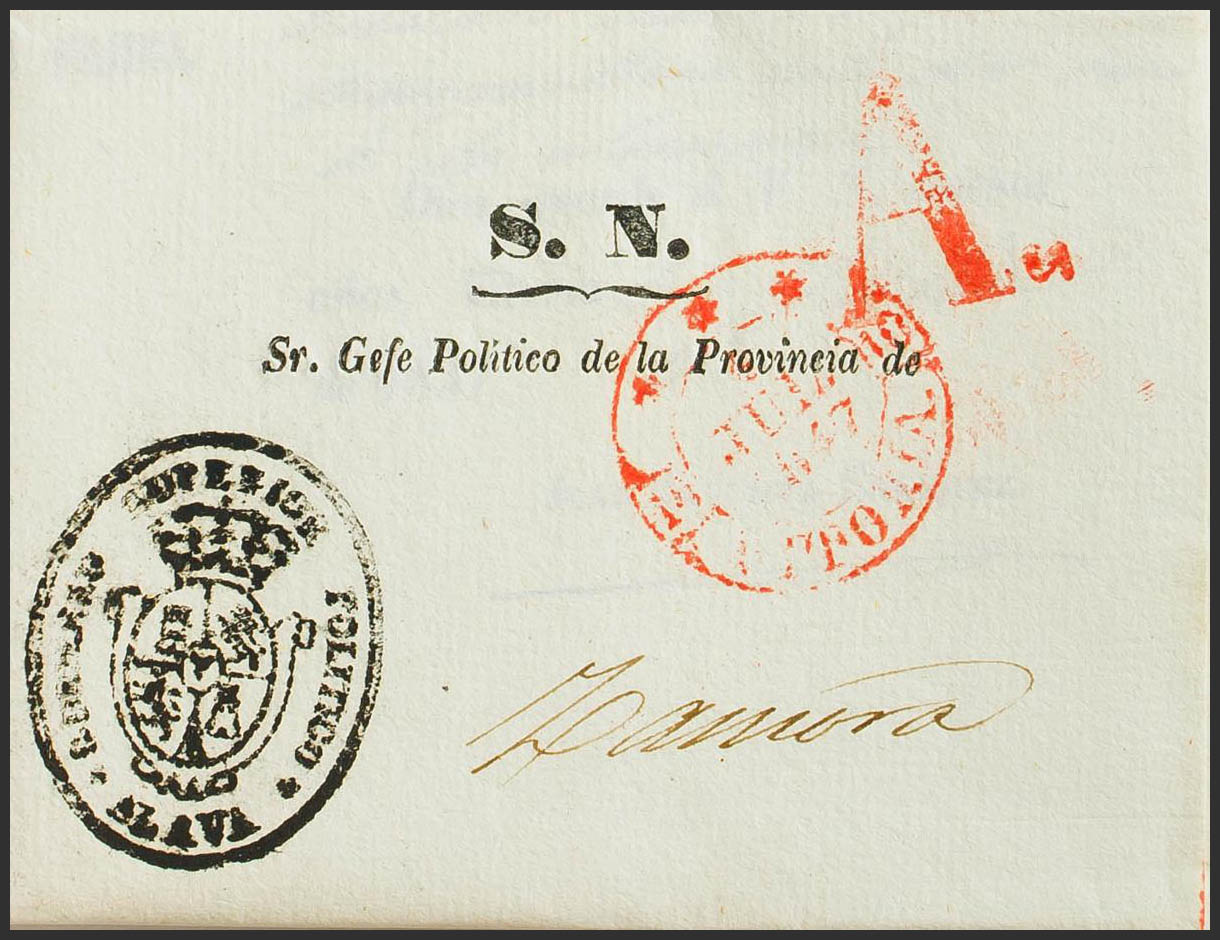1847. VITORIA to ZAMORA. Baeza *** / VITORIA and "As" de Abono mark, in Vitoria red (PE34) 2004 edition. MAGNIFICENT AND VERY RARE.