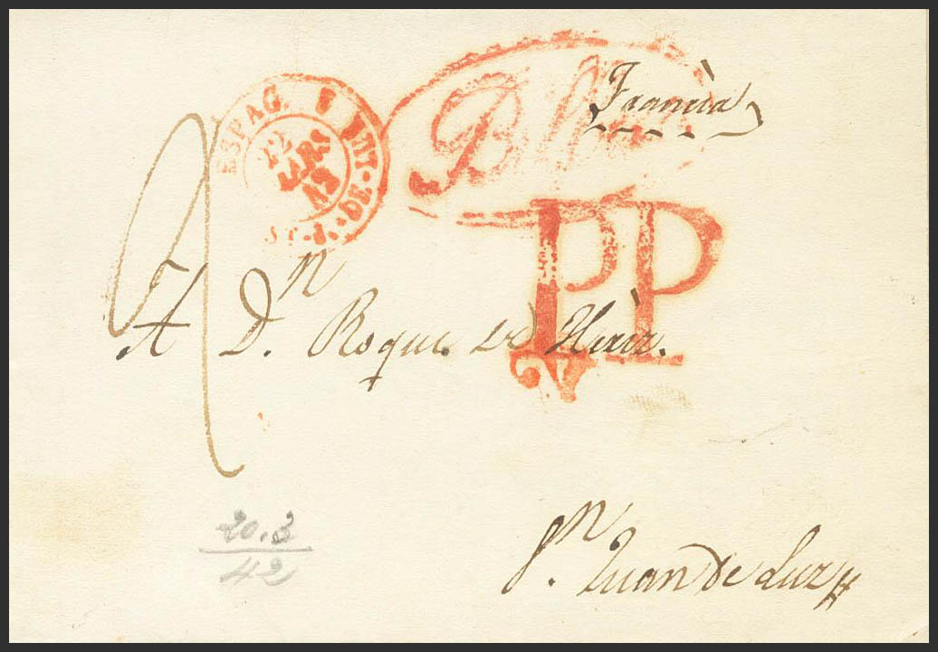 1842. BILBAO to SAINT JOHN DE LUZ (FRANCE). BILBAO and PP brands (PE21 and PE31) edition 2004. MAGNIFICENT AND VERY RARE.