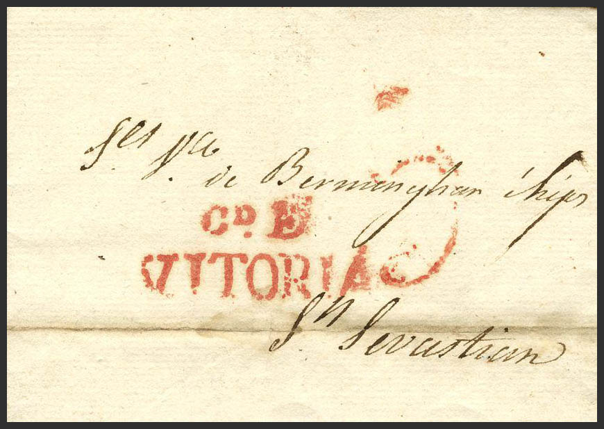 1819. VITORIA to SAN SEBASTIAN. CD brand. DE / VITORIA, in red (PE13) 2004 edition. MAGNIFICENT AND RARE.