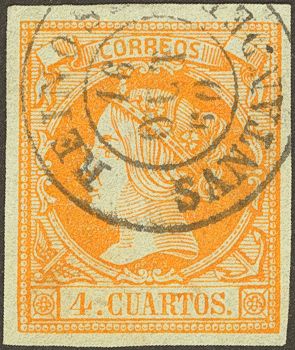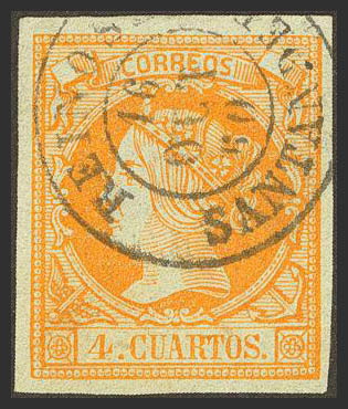 52. 1860. 4 cuartos yellow. REINOSA / SANTANDER postmark.