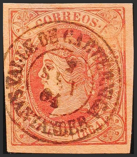 64. 1864. 4 pink cuartos . CABUERNIGA VALLEY / SANTANDER postmark. MAGNIFICENT AND RARE.