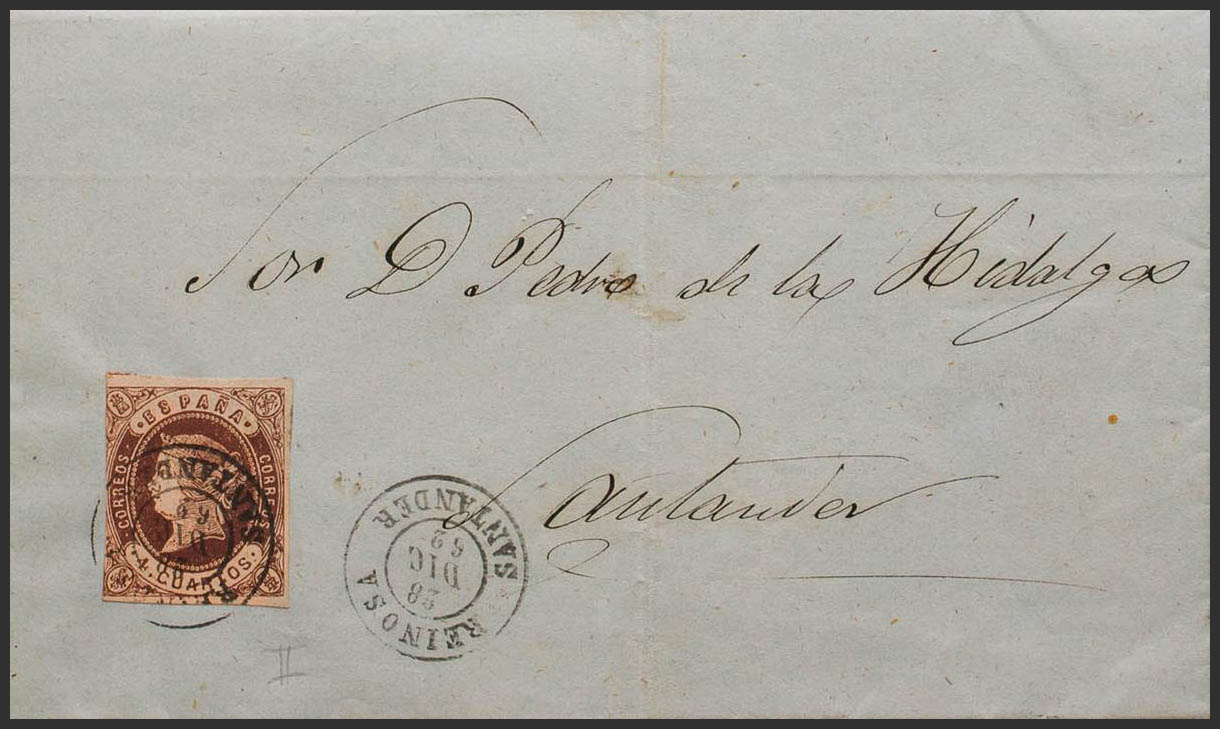 58. 1862. 4- cuartos chestnut. REINOSA to SANTANDER. REINOSA / SANTANDER postmark. MAGNIFICENT.