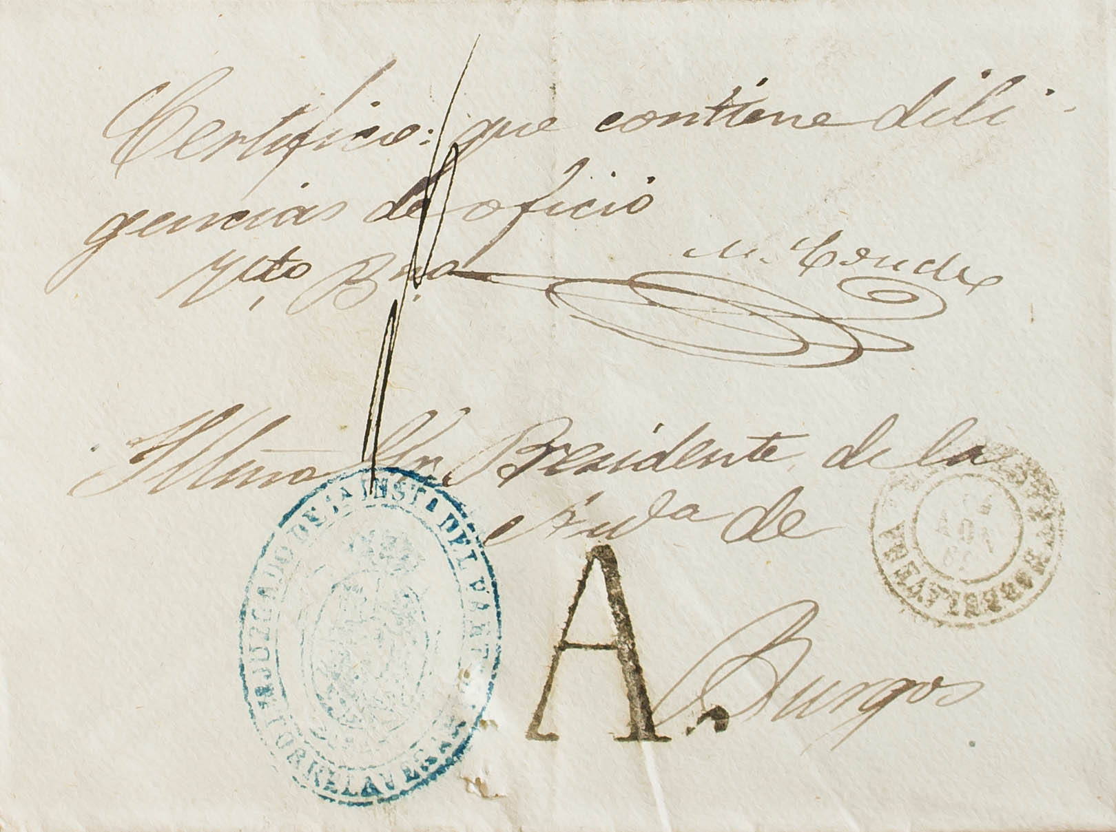 1864. TORRELAVEGA to BURGOS. Mark "A", in black from Torrelavega Fertilizer (PE6) 2004 edition. MAGNIFICENT STAMPING.