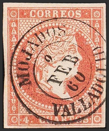48. 1855. 4 cuartos red. Postmark MOJADOS / VALLADOLID. MAGNIFICENT AND RARE.