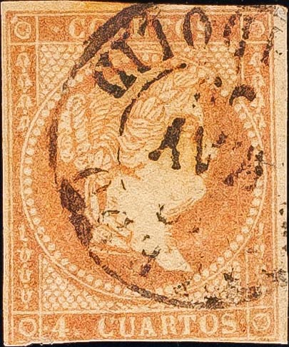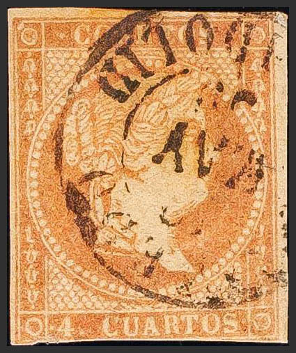 48. 1855. 4 cuartos red. Postmark OLMEDO / VALLADOLID (Type I). BEAUTIFUL AND RARE.
