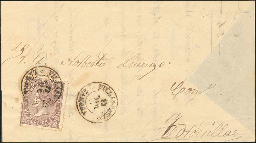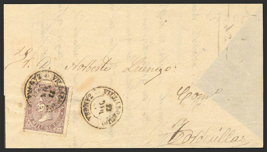 98. 1869. 50 thousand violet. VILLAPANDO to ZAMORA. Postmark VILLAPANDO / ZAMORA. WEIRD.