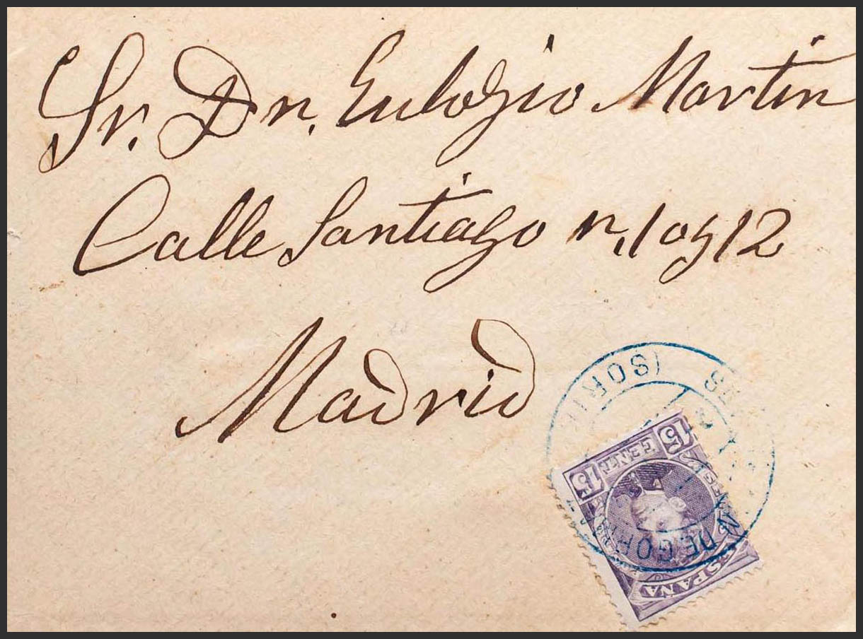 245. 1903. 15 cts chestnut lilac. SAN ESTEBAN DE GORMAZ to MADRID. Postmark S.ESTEBAN DE GORMAZ / (SORIA), in blue and arrival on the back. MAGNIFICENT.