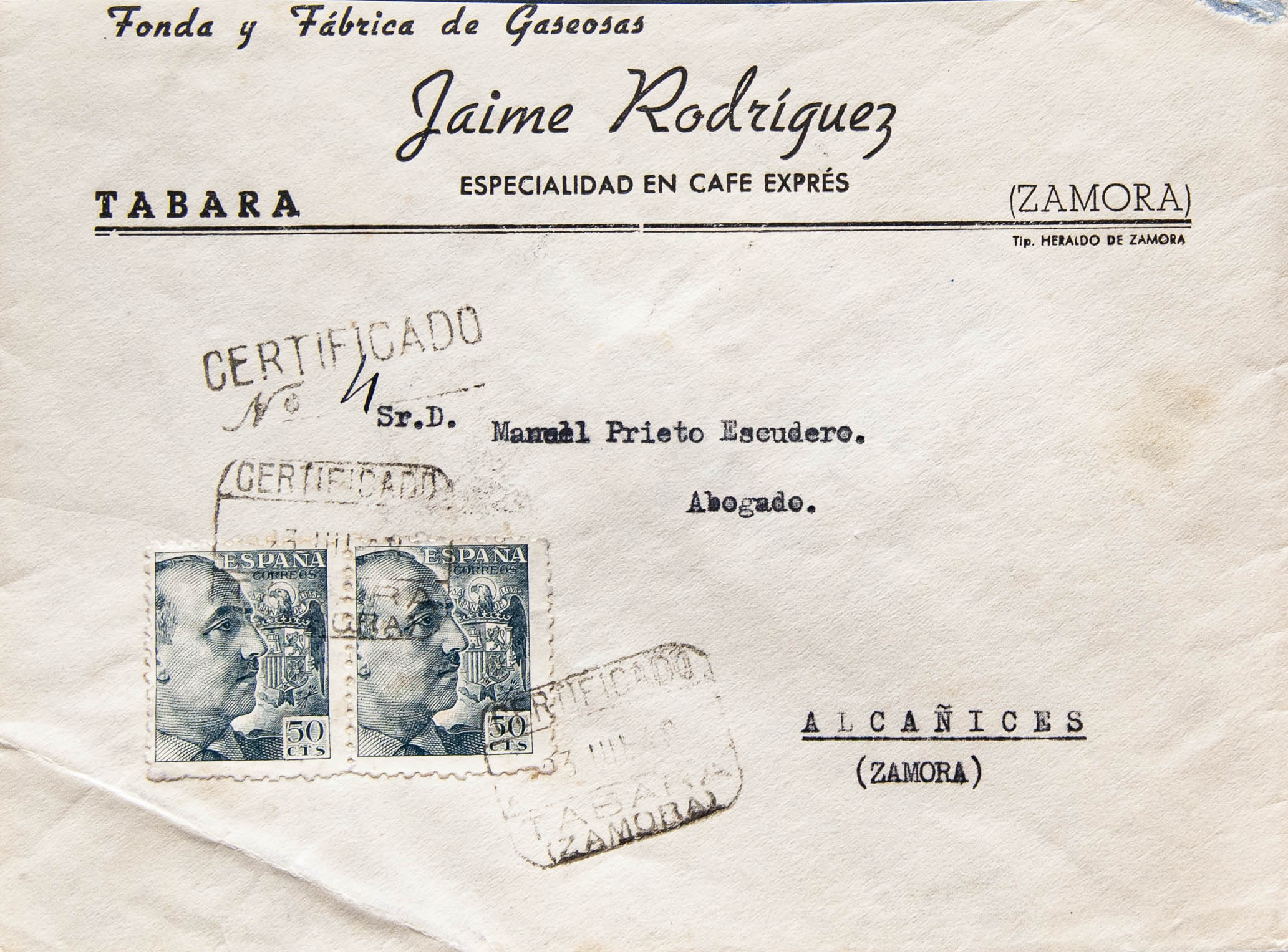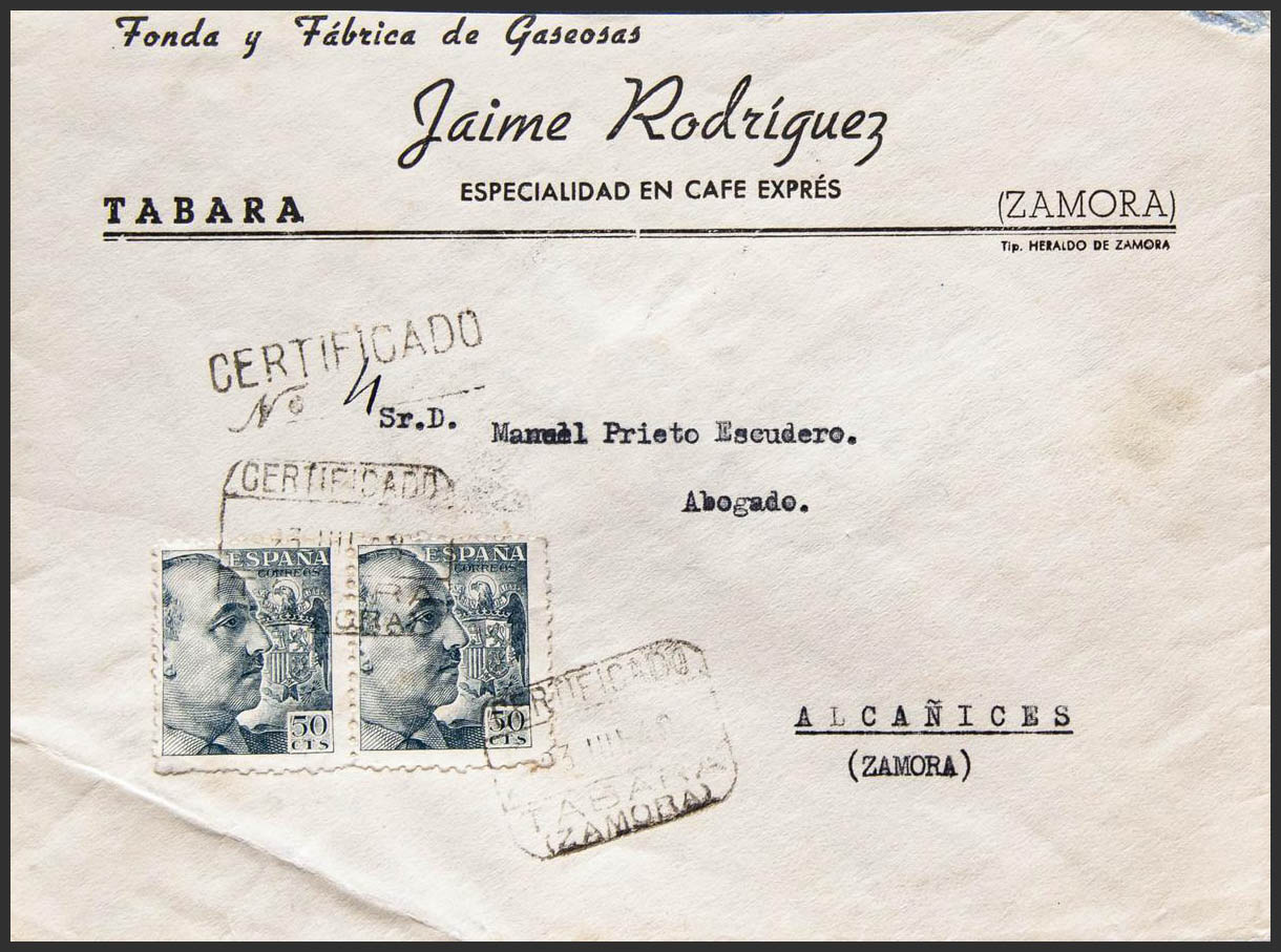 Castilla y León. Postal History. CERTIFICATE / TABARA / (ZAMORA), on the back of transit. MAGNIFICENT.