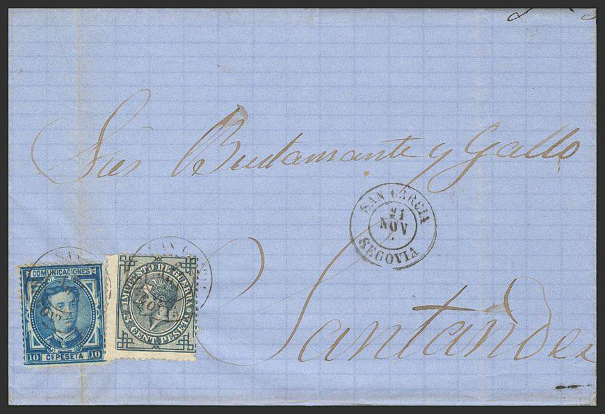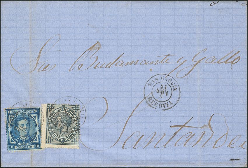 175, 183. 1876. 5 cts. and 10 cts. SAN RAFAEL to SANTANDER. Postmark SAN GARCIA / SEGOVIA. MAGNIFICENT.