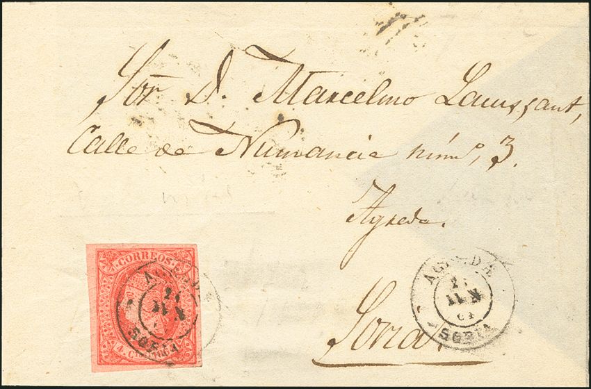 64. 1864. 4 cuartos pink. ATTACK SORIA. Postmark AGREDA / SORIA. PRETTY.