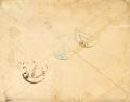 |ENVELOPE| 210(3). 1885. 15 cts orange, three stamps. BENAVENTE to PEÑAFIEL (VALLADOLID), reissued to MADRID. Clover postmark BENAVENTE / (ZAMORA), in blue. MAGNIFICENT AND UNUSUAL TRIPLE POSTAGE.