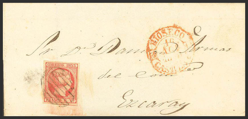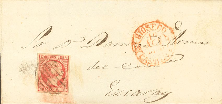 17. 1853. 6 cuartos rose. RIOSECO to EZCARAY. MAGNIFICENT.