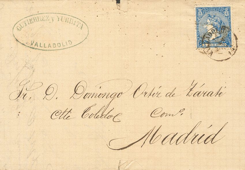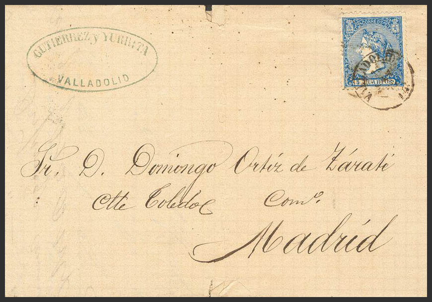 English 81. 1866. 4 cuartos blue. VALLADOLID to MADRID. Postmark VALLADOLID / 14. MAGNIFICENT AND RARE.