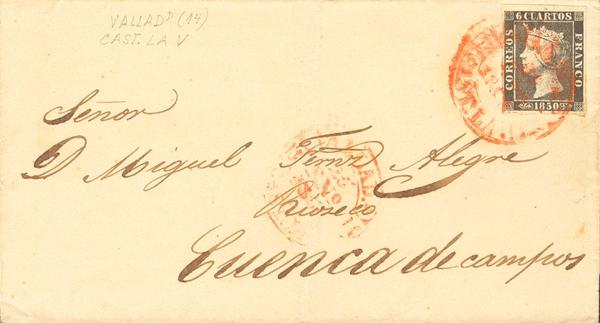 1. 1850. 6 cuartos black. VALLADOLID to BASIN. Postmark baeza VALLAD. / CAST. THE MAGNIFICENT V.