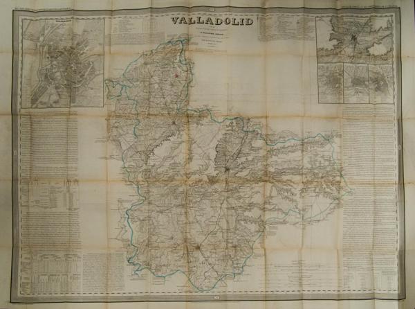 1852. ATLAS OF SPAIN AND ITS OVERSEAS POSSESSIONS, Francisco Coello. Corresponding to the province of VALLADOLID and in the hardcover edition of 1853 (map and folder), historical, administrative data, etc. and the plans of the largest cities in the province at that time are included. MAGNIFICENT AND UNUSUAL MAP OF THE PERIOD OF ISABEL II, WHICH INCLUDES ALL THE POST ROUTES OF THE PERIOD, IDEAL FOR THE STUDY OF THE POSTAL HISTORY OF THE COLLECTOR OF THIS REGION, THIS WORK HAS ALWAYS BEEN PRESENT IN THE GREAT SPANISH PHILATELIC LIBRARIES SUCH AS THOSE OF MONGE, CLIMBING, TIZON, GALVEZ. Ex-GRAUS.