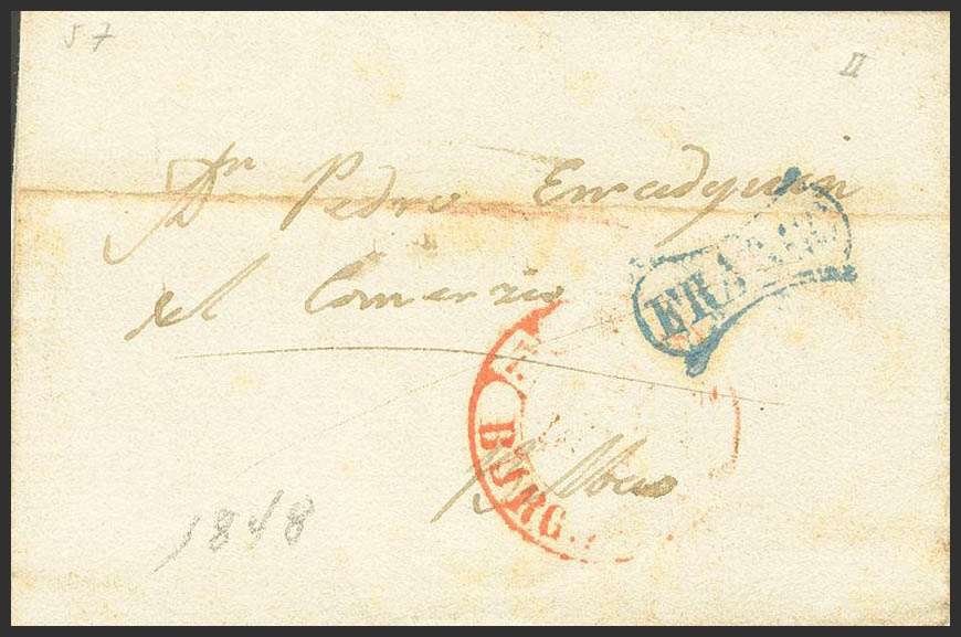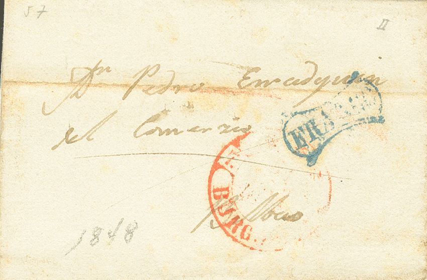 1848. BURGOS to BILBAO. FRANCO brand, in blue (PE 19). WEIRD.