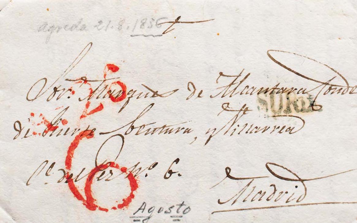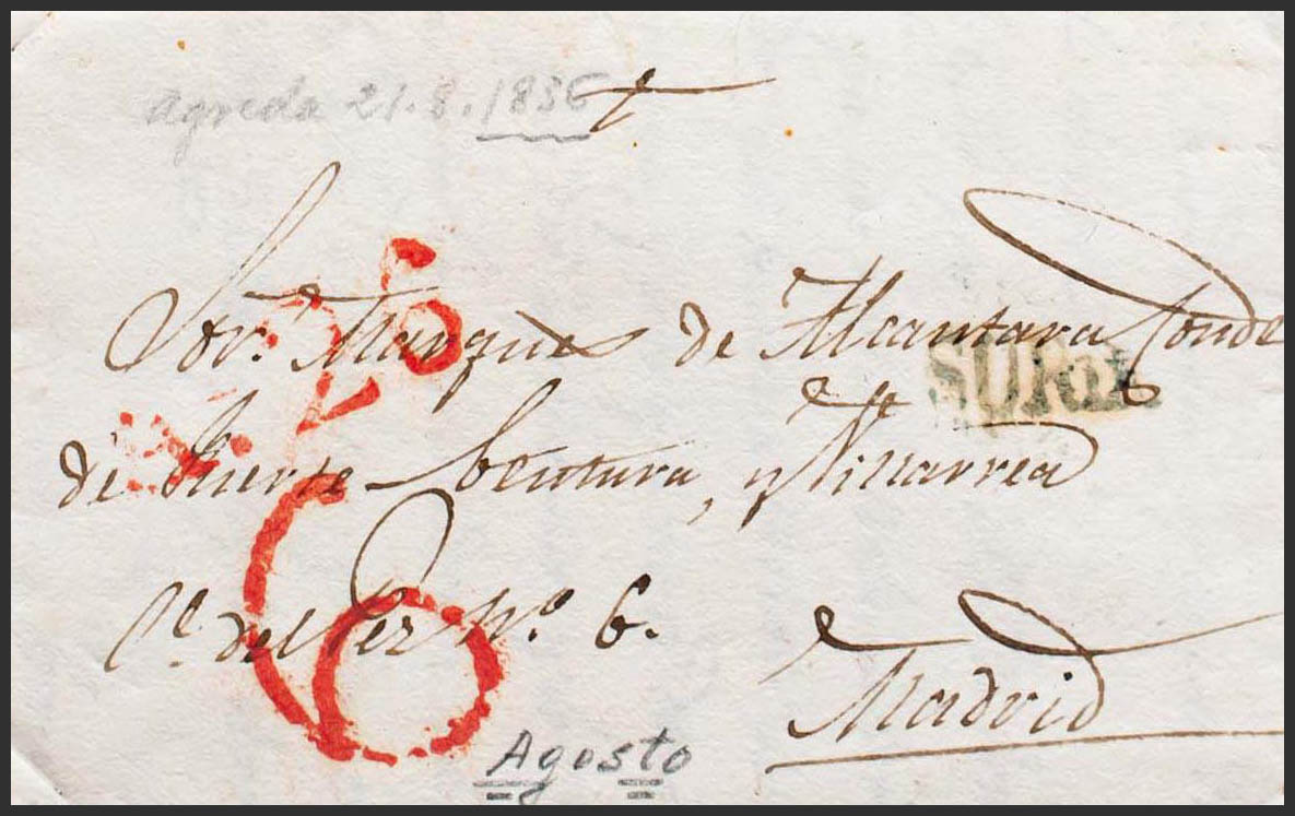 Castilla y León. Pre-philately. 1836. ATTACKS MADRID. SORIA, in blue and in transit through Soria (PE21) 2004 edition. RARE.