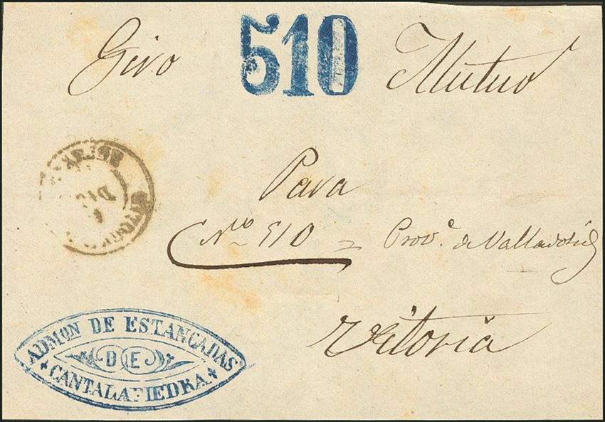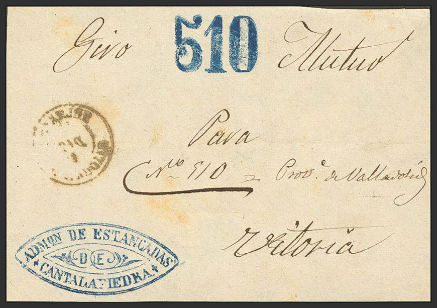 (1860ca). Front of mutual transfer certificate from CANTALAPIEDRA to VITORIA. MAGNIFICENT AND RARE.