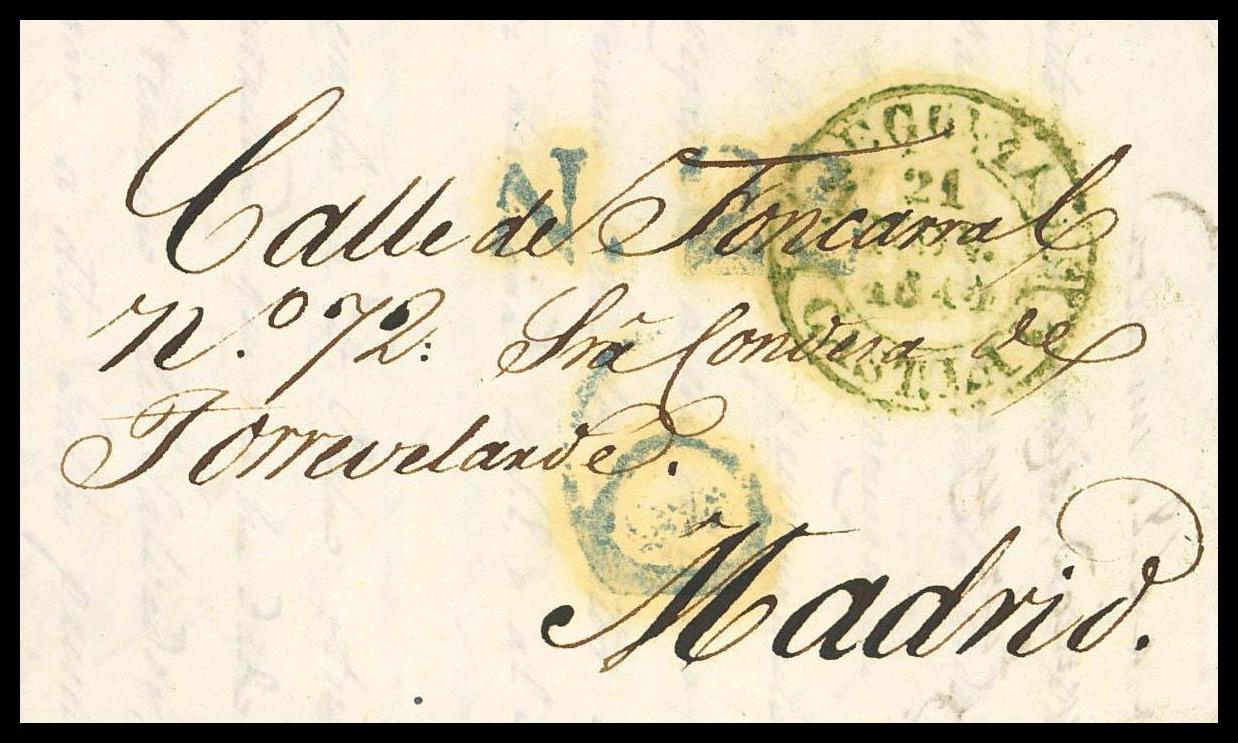 |ABOUT|1844. SEGOVIA to MADRID. Baeza SEGOVIA / CAST.LA V., in green. MAGNIFICENT.