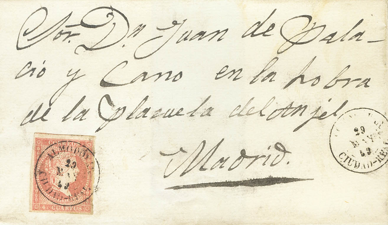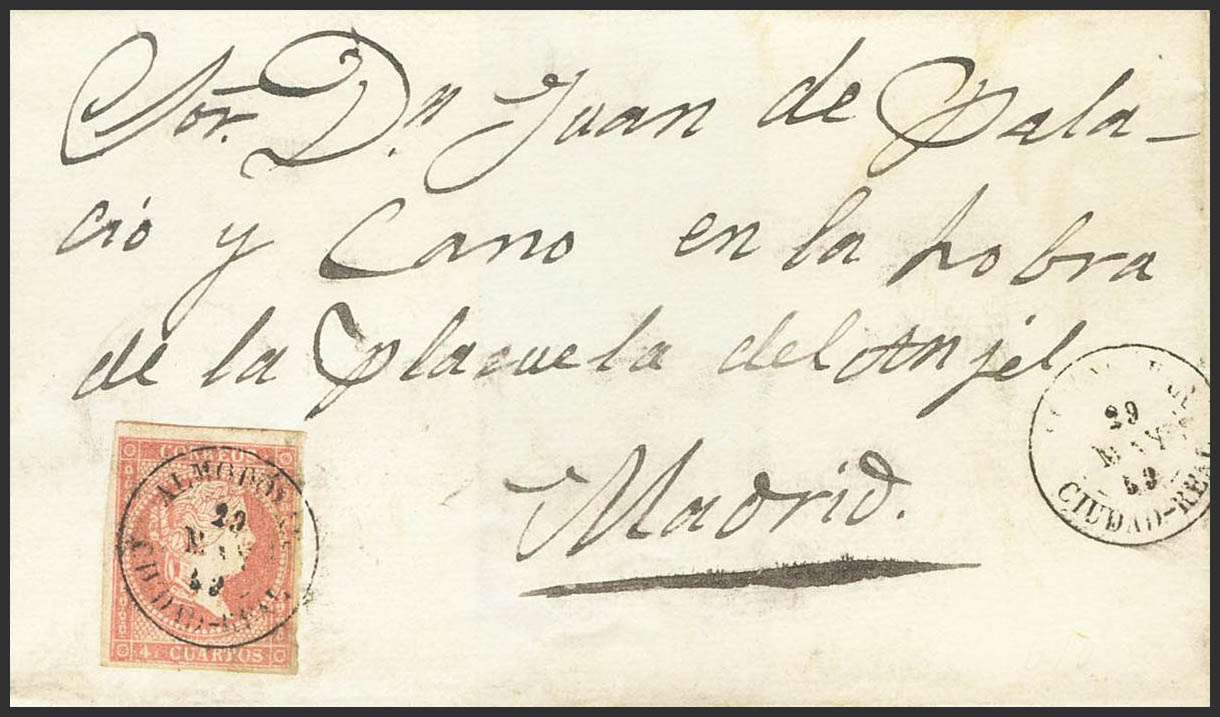 48. 1860. 4 cuartos red. ALMODOVAR to MADRID. Postmark ALMODOVAR / CIUDAD-REAL. MAGNIFICENT.