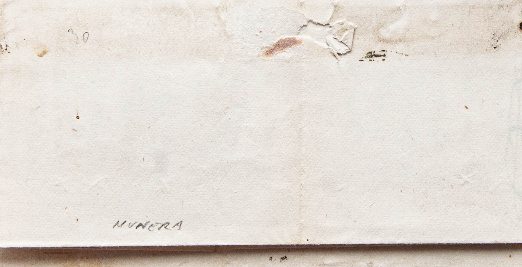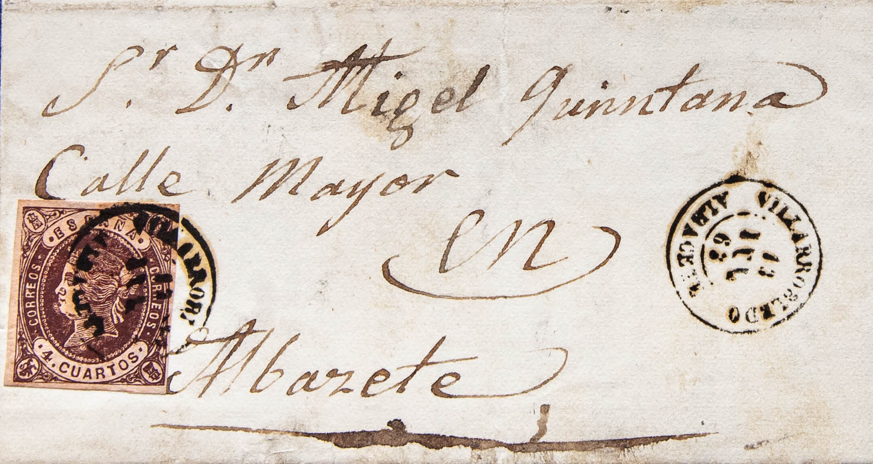 58. 1863. 4 cuartos chestnut. MUNERA (ALBACETE) to ALBACETE. Postmark VILLAROBLEDO / ALBACETE. MAGNIFICENT.