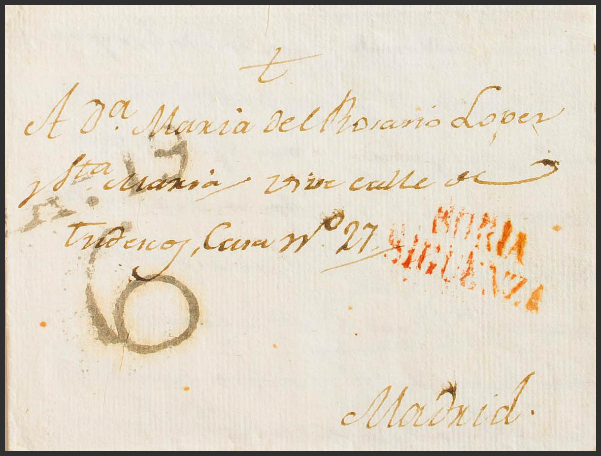 1822. SIGÜENZA to MADRID. SORIA / SIGUENZA brand, in red (PE4) 2004 edition. MAGNIFICENT.