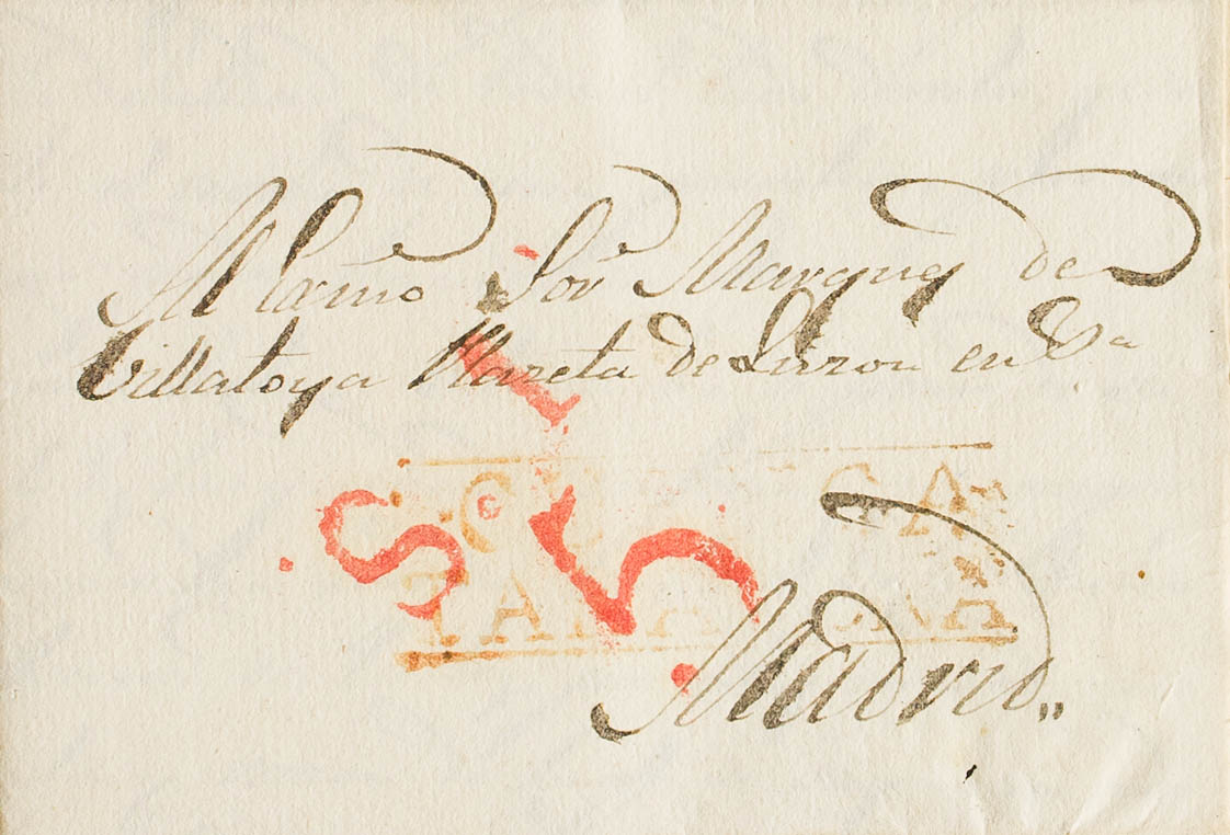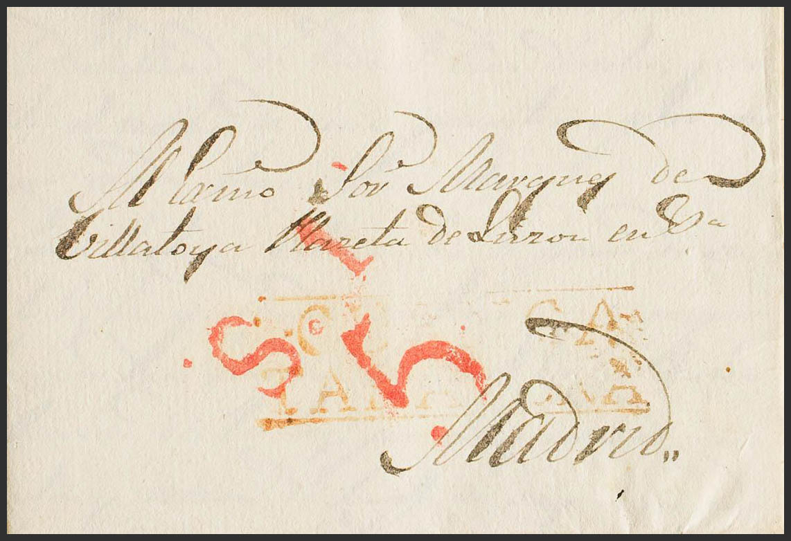 1836. VILLAMALEA to MADRID. CUENCA / TARAZONA brand, in red (PE2) 2004 edition. MAGNIFICENT.