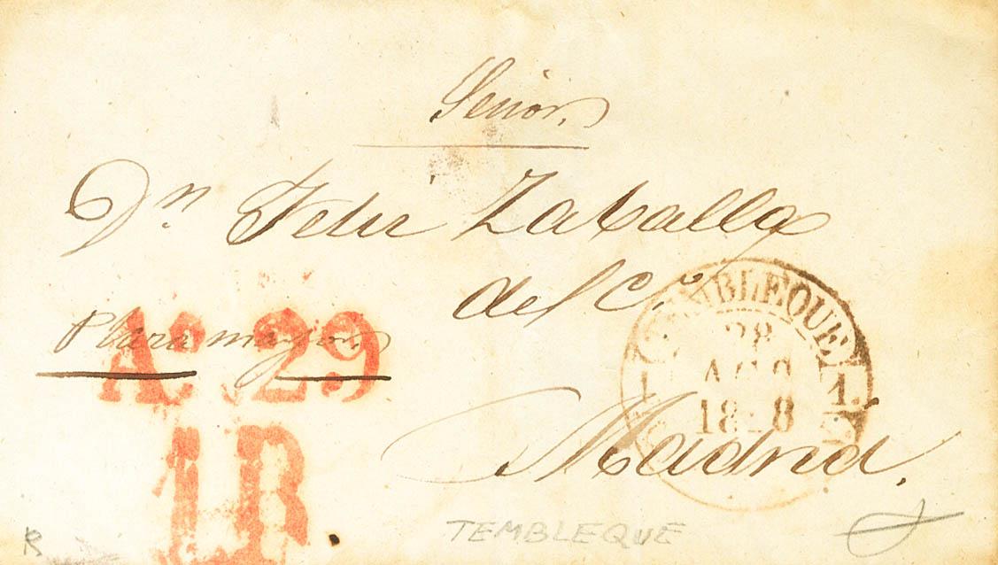 |ABOUT|1848. TEMBLEQUE (TOLEDO) to MADRID. Baeza TEMBLEQUE / CAST.LA N, in red. MAGNIFICENT AND RARE.
