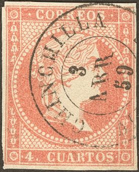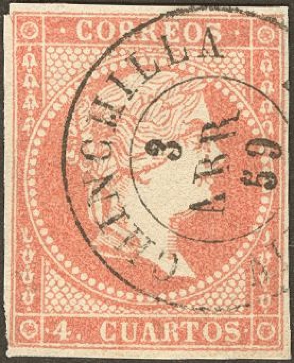 48. 1856. 4 red cuartos . Postmark CHINCHILLA / ALBACETE.