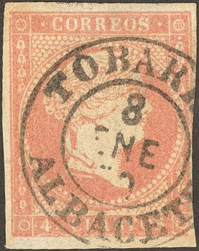 48. 1856. 4 red cuartos . Postmark TOBARRA / ALBACETE (Type I).