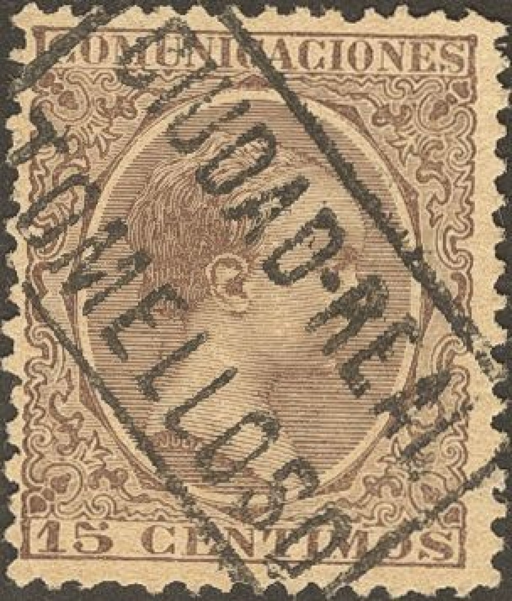 219. 1889. 15 chestnut cts. Mail postmark CIUDAD REAL / TOMELLOSO. MAGNIFICENT.