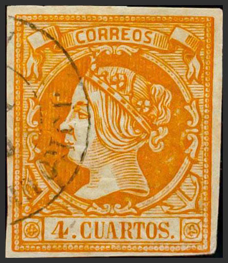 52. 1860. 4 cuartos yellow. Postmark JORQUERA / ALBACETE. MAGNIFICENT AND RARE.