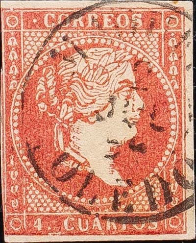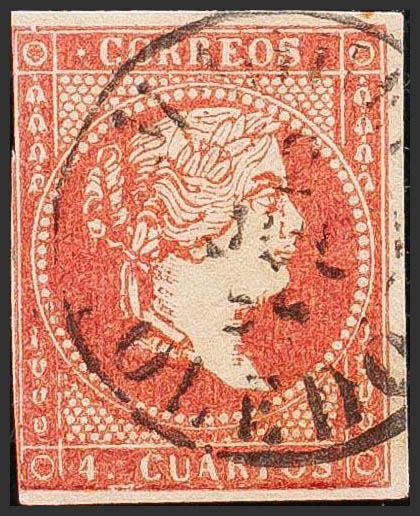 48. 1855. 4 cuartos red. MAQUEDA / TOLEDO postmark (Type I). MAGNIFICENT.