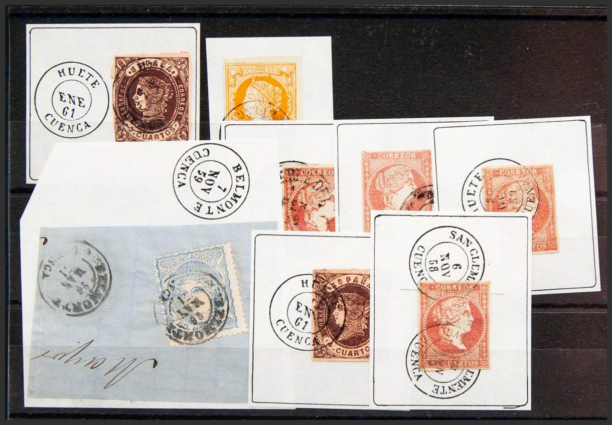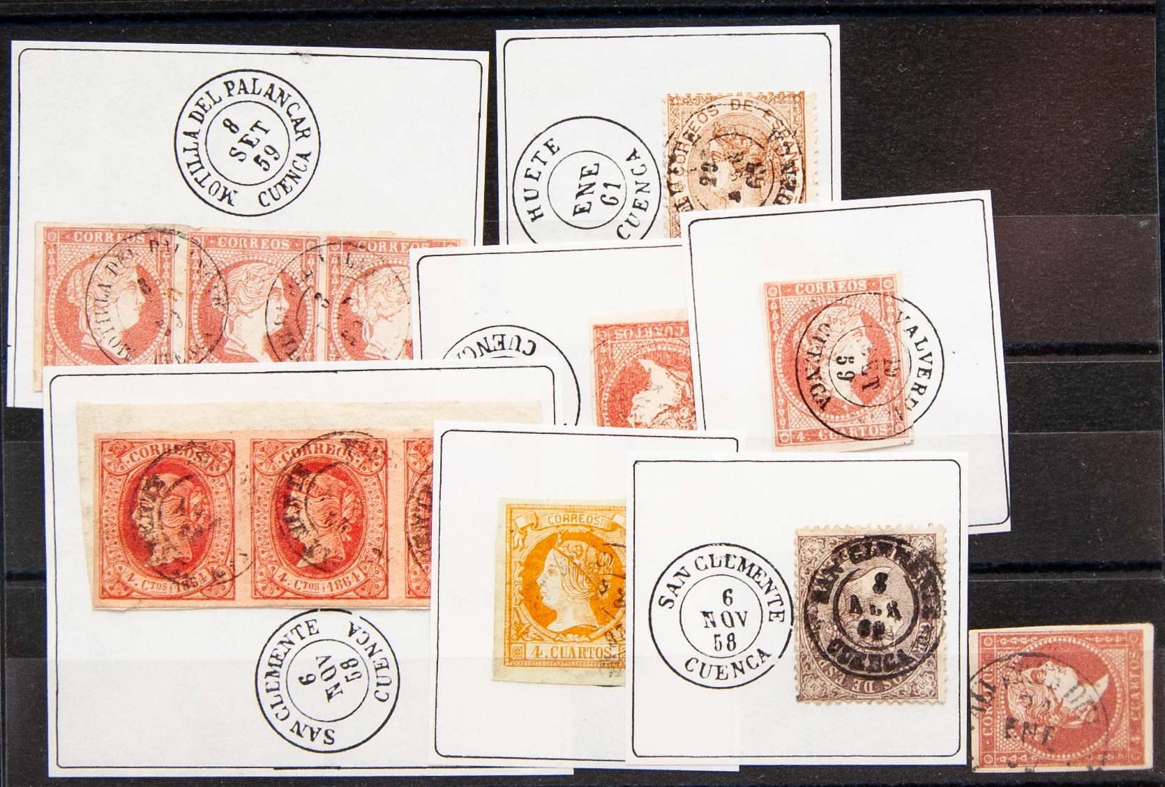 48, 52, 58, 64. (1855ca). Interesting set of more than fifteen stamps between 1860 and 1875, unused with different date postmarks from the province of Cuenca, in very good quality. MAGNIFICENT.