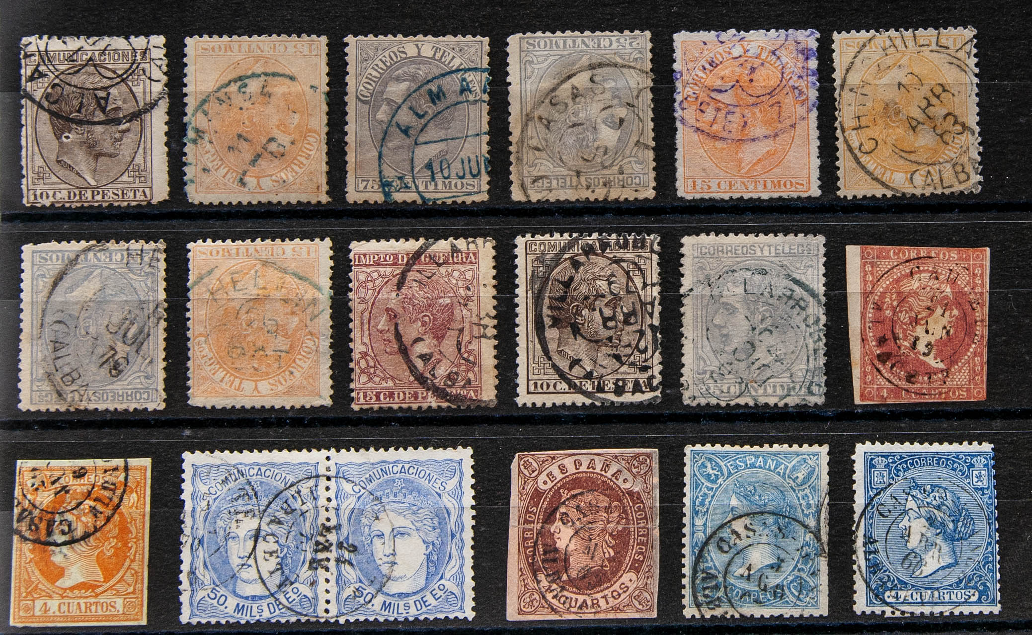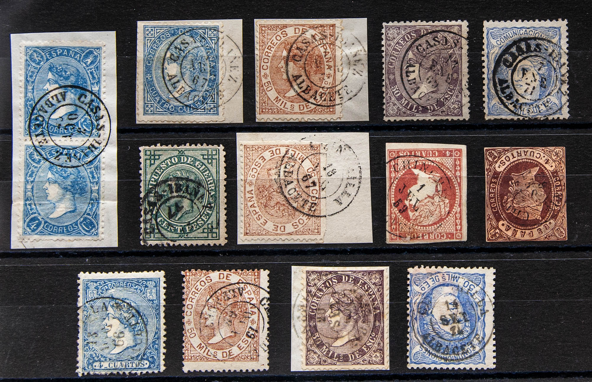Castilla la Mancha. Philately. Set of thirty-one stamps with postmarks from the province of Albacete. MAGNIFICENT.