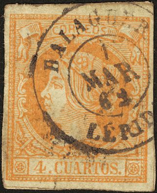 52. 1860. 4 cuartos yellow. Postmark BALAGUER / LERIDA.
