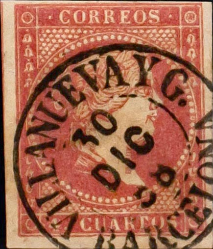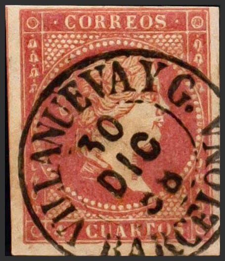 48. 1855. 4 cuartos red. Postmark VILLANUEVA Y G. / BARCELONA (Type I). MAGNIFICENT.